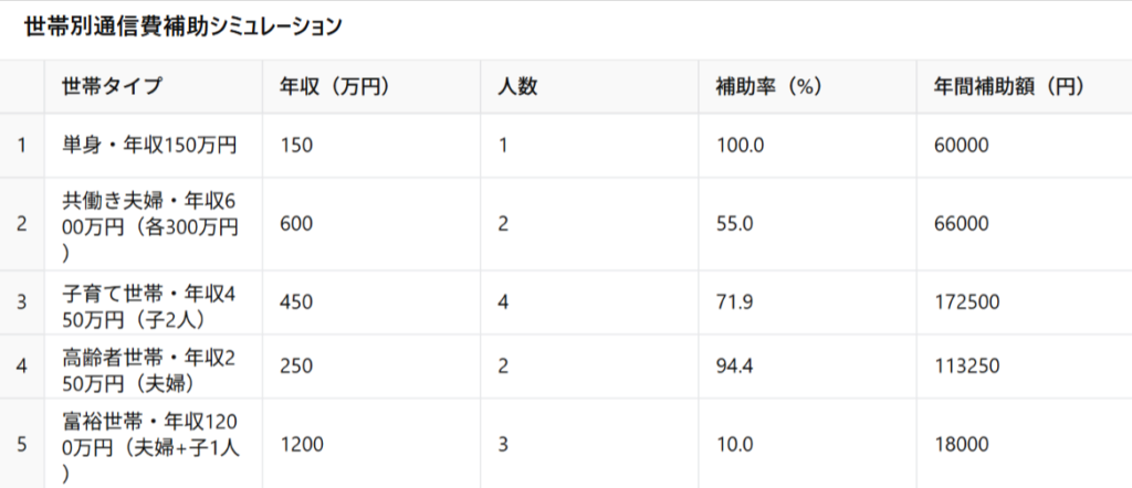 世帯別通信費補助シミュレーション