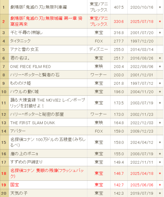 日本映画の興行収入上位はほぼ全てアニメ作品が占めるようになりました