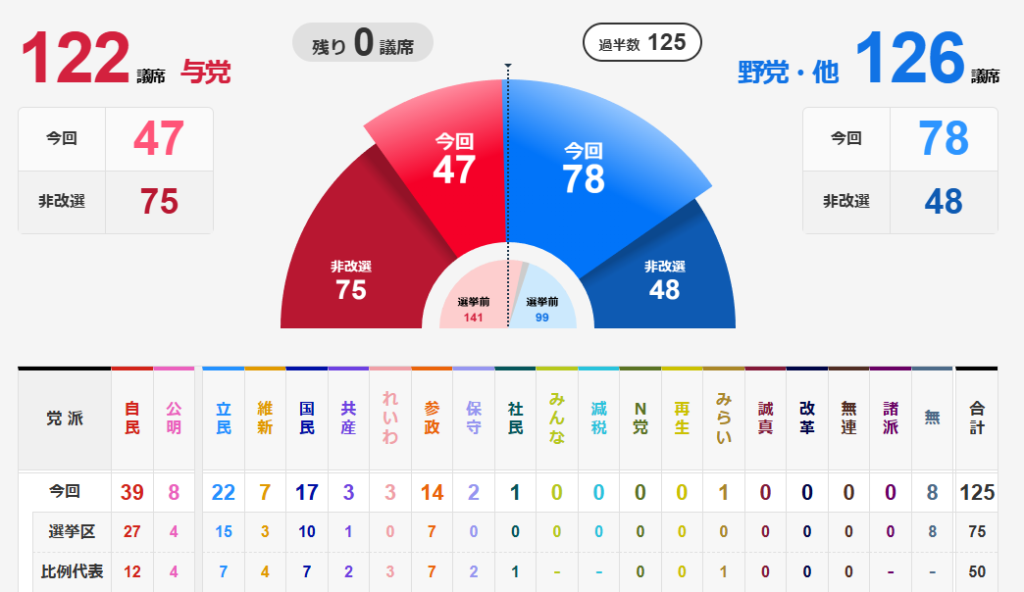 歴史の大転換点だった2025年の参議院選挙の結果が出ました。
